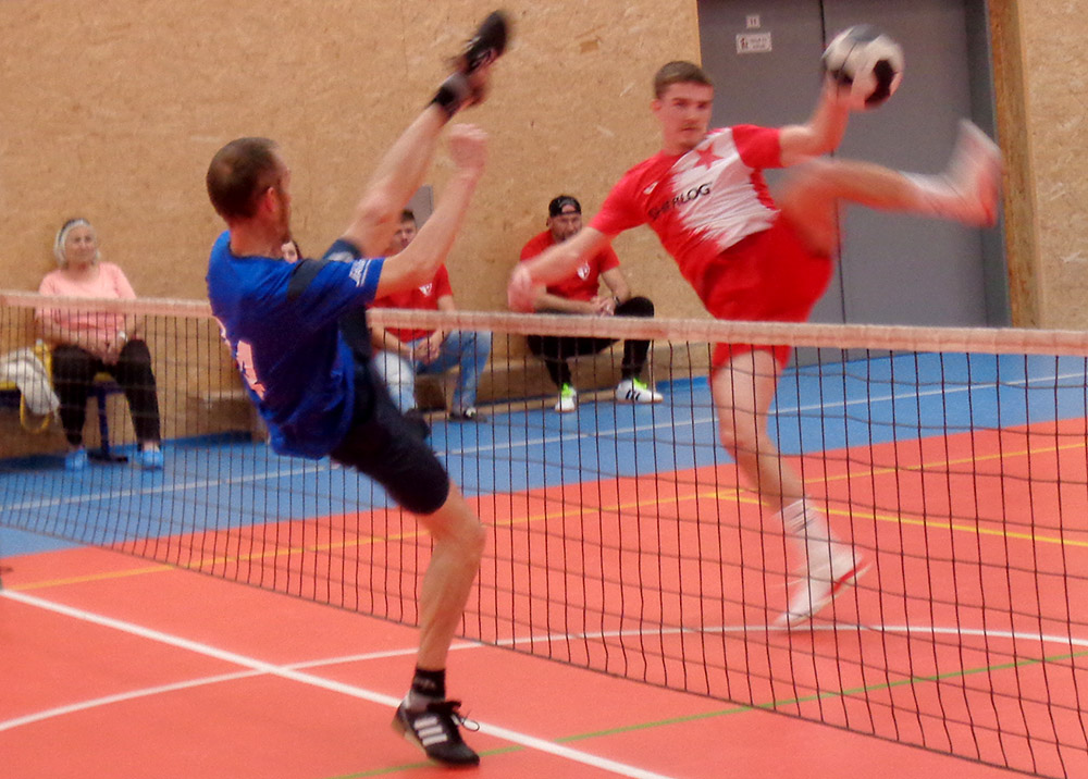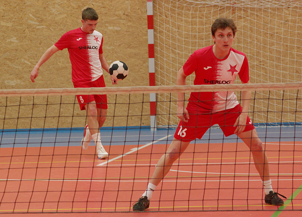 V halovém prostředí Slavia postrádala Volfa a Škabrouda, Jihočeši Rychlého. Začátek utkání ale vůbec červenobílým nevyšel, brzy totiž prohrávali 0:3. V první dvojici se A. Fürbacher se Šperlíkem proti Žikešovi ml. s Řežábkem potýkali s obrovskou kazivostí, ve druhé pak J. Fürbacher, Talpa a střídající Tuška potrápili L. Musila s Bělíkem jen ve druhé sadě. Na špatné dvojkové výkony navázali ve trojici A. Fürbacher se Šperlíkem, Patákem a naskočivším Buddeusem, kteří snadno padli s Žikešem ml., Bělíkem a Peterkou. Sešívané předchozí vývoj duelu šokoval, ale poučili se, zabrali a předvedli čtyřbodovou šňůru. Jako první zastavilo hosty trio Talpa, J. Fürbacher, Voltr, které zdolalo Musila, Řežábka a Hrádka. Ve vložené dvojici Paták s Voltrem po jasné výhře v první sadě trochu polevili a Žikeše st. s Hrádkem a Peterkou museli pokořit až ve zkráceném setu. Singlový zápas plný chyb urval pro sebe ve třetí sadě A. Fürbacher a bylo vyrovnáno. Domácí ale ještě nekončili, další bod vyválčili A. Fürbacher, Paták, Šperlík a střídající Buddeus, když otočili nepříznivý průběh s trojicí L. Musil, Řežábek, Hrádek. Další tříseťák ale už dopadl pro hosty, Talpa, J. Fürbacher a Voltr podlehli Žikešovi ml., Peterkovi a Bělíkovi. O přídělu bodů tak rozhodovaly až poslední debly. Nejprve se radovali domácí prostřednictvím A. Fürbachera a Šperlíka, kteří přehráli L. Musila s Bělíkem. Poslední debl byl nervák se šťastnou tečkou pro hostující Žikeše ml. s Řežábkem, kteří posledním možným míčem přetlačili Talpu, J. Fürbachera a alternujícího Tušku. Po téměř čtyřech hodinách se tedy oba soupeři o tabulkové body podělili.