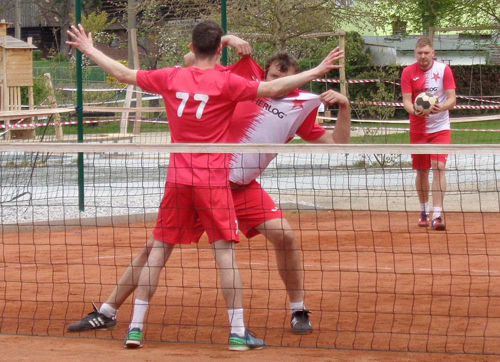Bez Talpy, Škabrouda a Tušky vyrazili sešívaní na půdu nováčka z Příšovic s cílem urvat výhru. Utkání se proměnilo v urputný souboj. První se radovali hosté, když A. Fürbacher se Šperlíkem přehráli M. Procházku a Krause. Ve druhé dvojce ale domácí J. Procházka a Sisák byli lepší Patáka, Voltra a alternujícího Havlíka. Vedení hostům vrátila trojice A. Fürbachera, Šperlíka a Buddeuse, která těsně v koncovkách přetlačila Koška, Stolína, M. Procházku a střídajícího Krause. Domácí ale opět rovnali stav, když Sisák, J. Procházka a Janata porazili Patáka, J. Fürbachera a Voltra. Ve vložené dvojce Košek a Janata přehráli J. Fürbachera s Buddeusem a domácí poprvé vedli. Za hosty vyrovnal A. Fürbacher, když v singlu porazil M. Procházku. Hosté zlepšili výkon a potvrdili to v obou trojkových odvetách. Paták, J. Fürbacher, Voltr celkem s přehledem porazili Krause, M. Procházku, Stolína a střídajícího Koška, poté A. Fürbacher, Šperlík a Buddeus posledním možným míčem udolali Sisáka, J. Procházku a Janatu. V divoké první odvetě dvojic byli blíže výhře domácí M. Procházka a Kraus, ale nakonec i oni o jediný míč podlehli Havlíkovi, Voltrovi a naskočivšímu Patákovi.