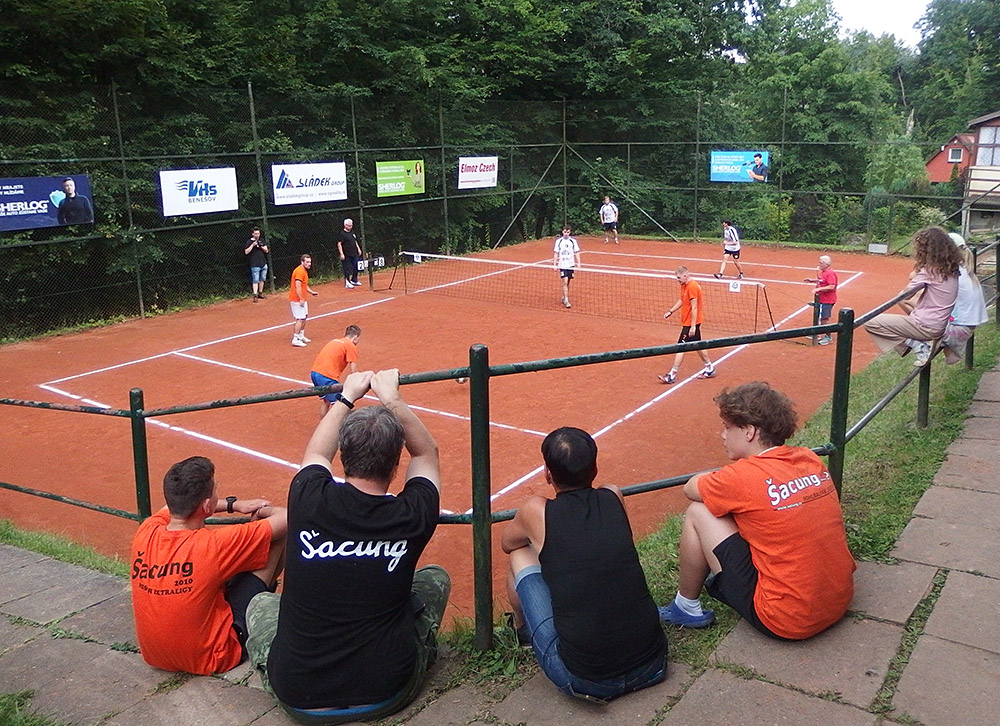 Jeden z nejstarších a nejslavnějších letních osadních turnajů, konaný na posázavské osadě Šacung u Kaliště-Lensedel, letos zapsal 63. ročník konání. Červenobílé barvy reprezentovala trojice zkušeného Pacovského a dorostenců Tušky a Hrkala. Ta v základní skupině moc radosti neužila, když postupně podlehla druholigovým Hasičům a extraligovým sestavám Šacungu Benešov a Solidarity Praha. Ve čtvrtfinále ji čekal další silný tým, vedoucí celek 1. ligy z pražských Řeporyjí. I přes bojovný výkon slávisté v koncovkách setů padli a s turnajem se loučili.