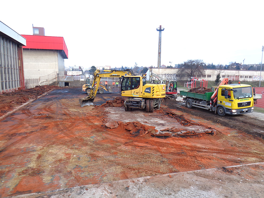Ve sportovním areálu v Edenu probíhá výstavba nových nohejbalových kurtů.
